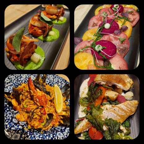 Inspiré du Fleuve Saint-Laurent pétoncles, crevettes nordiques, chair de homard, calamars et moules, parmesan, petits légumes et herbes fraiches.